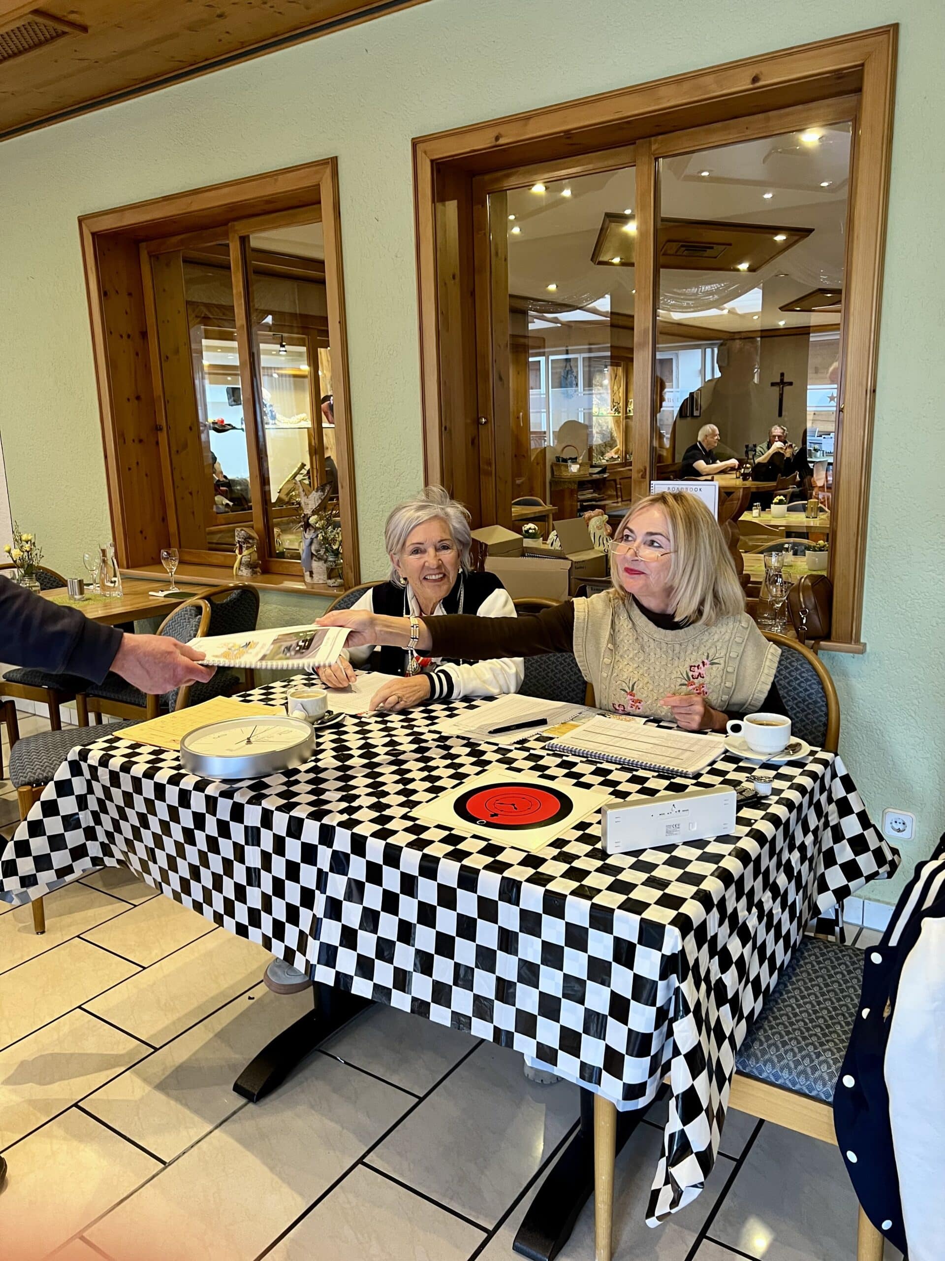 WÀhrend die Fahrer und Fahrerinnen sich bei uns im Hotel KlosterbrÀustuben am Mittagsbuffet stÀrkten, verwandelten sich die ParkplÀtze rund ums Hotel in rollende Museen. Doch die Zeit drÀngte: Nach dem Essen schnappten sich die Teams ihre neuen Roadmaps, um die nÀchsten Kilometer unter die RÀder zu nehmen.